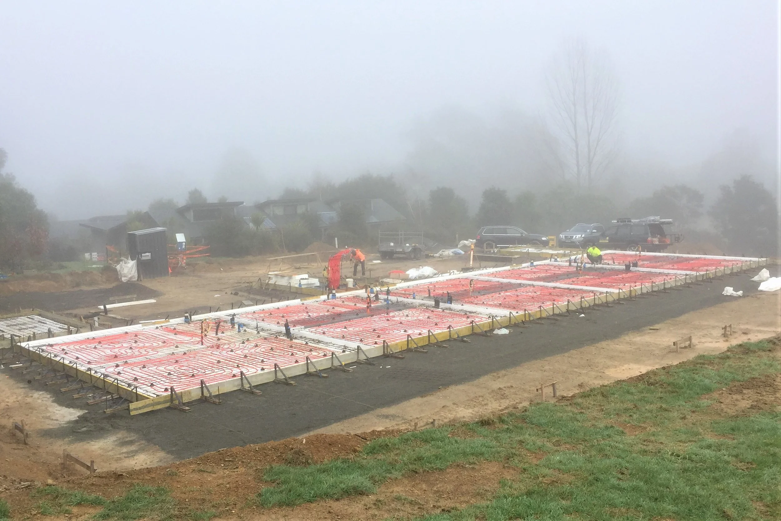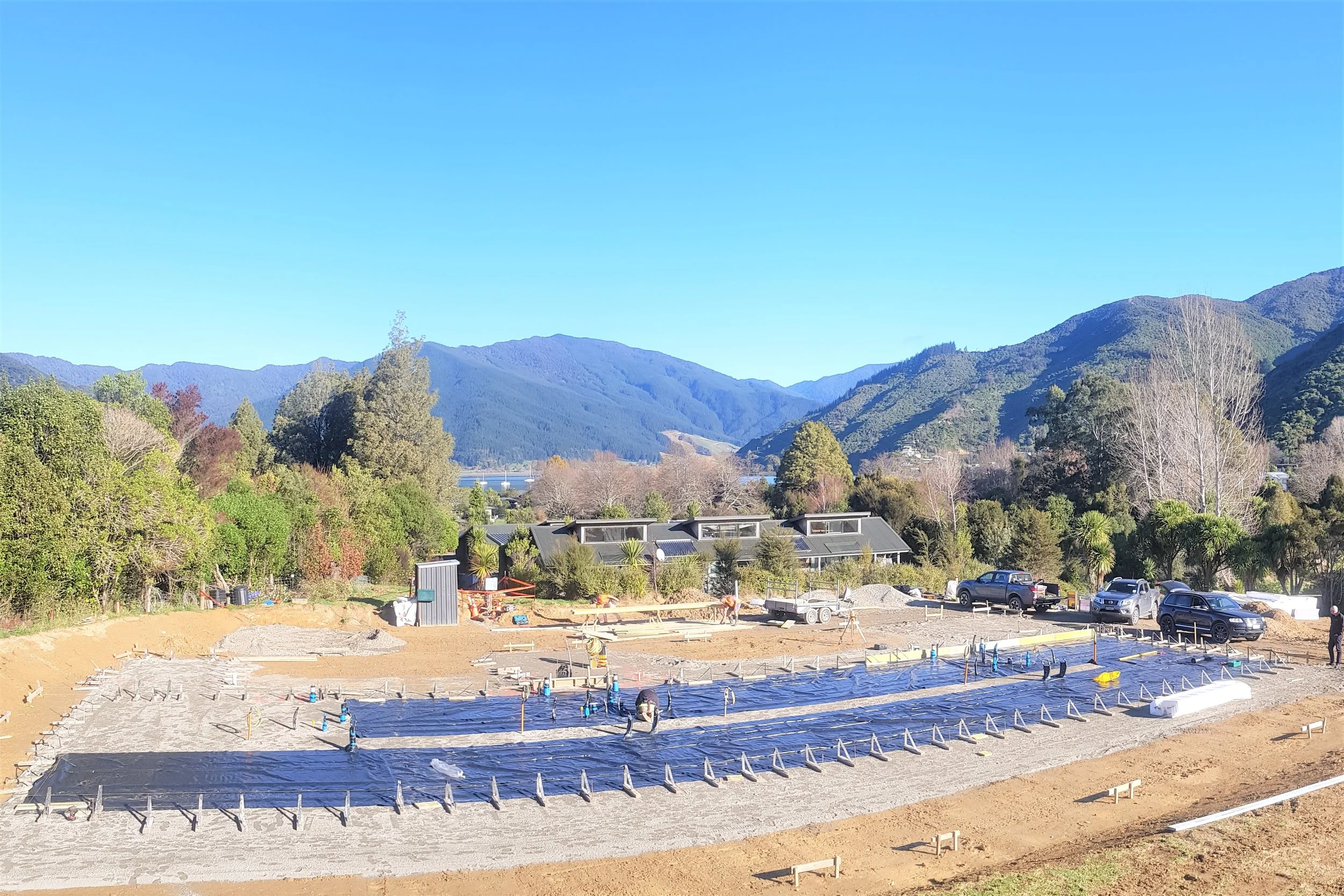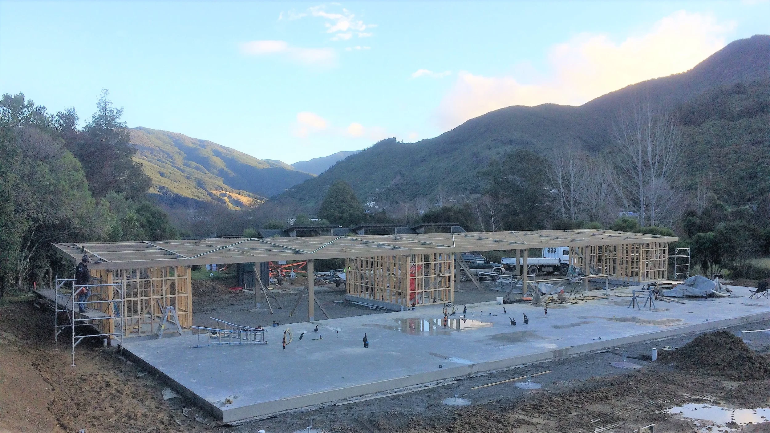 Glenroy Housing were tasked to build 5 Accommodation units for the Outward Bound Instructors in beautiful Anakiwa - Queen Charlotte Sound. The five, north facing one bedroom lodges each have a light and bright kitchen / lounge area, bathroom, private patio along with carport and lockup storage room. With a requirement to keep the lodges as energy efficient as possible we installed one super efficient hotwater heat pump system to provide underfloor heating and meet all the needs for domestic hot water. Utilising the MAXRaft® floor system achieves a complete thermal break ensuring heat does not transfer out to the surrounding environment and minimises heat loss.